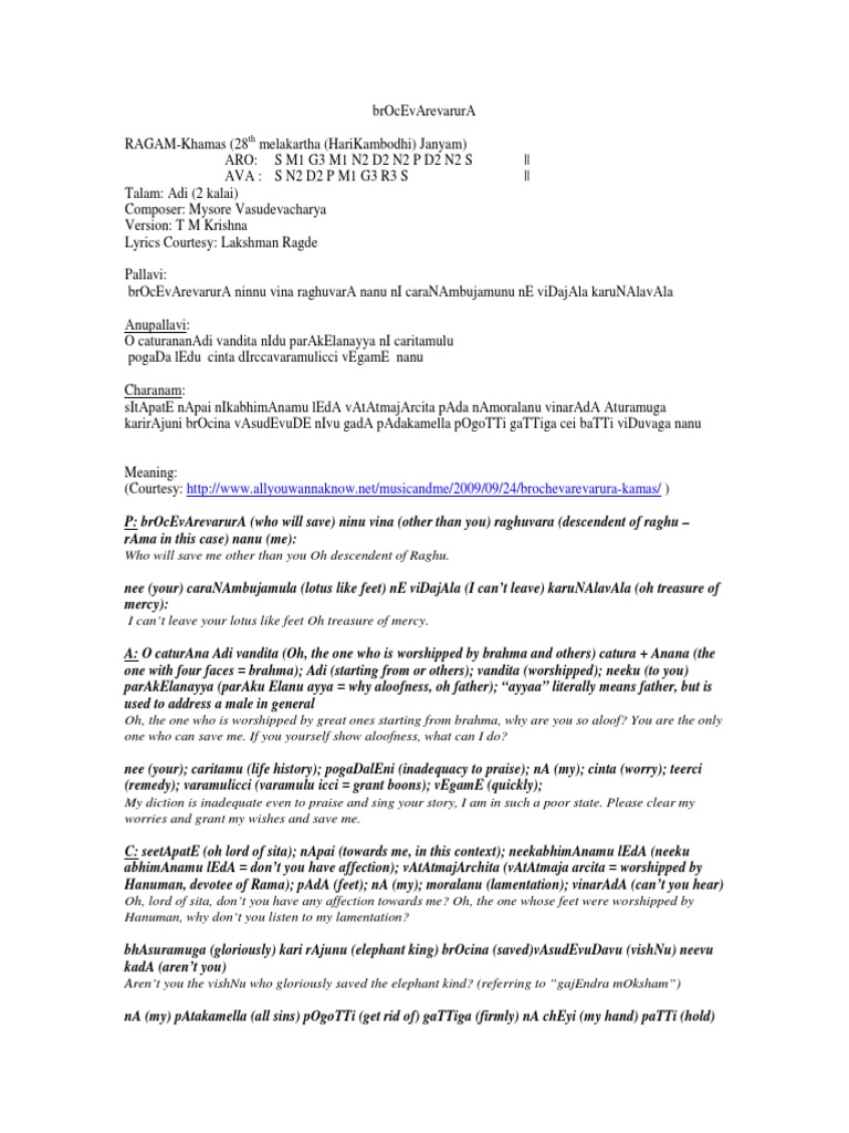 Brochevarevarura Lyrics In English / Brochevarevarura by mangalampalli balamurali krishna.